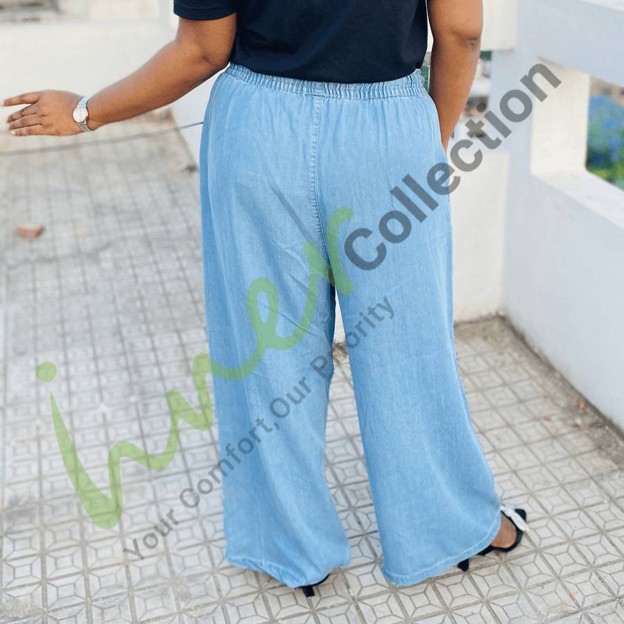 Ladies Denim Non Stretchable Plazoo- Icy Blue